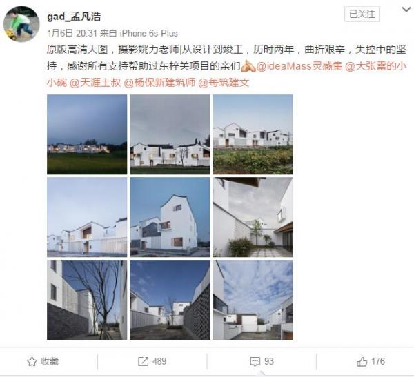 這是一組農(nóng)村建筑組圖,孟凡浩寫道,“從設計到竣工,歷時兩年,曲折艱辛,失控中的堅持,感謝所有支持幫助過東梓關項目的親們。”