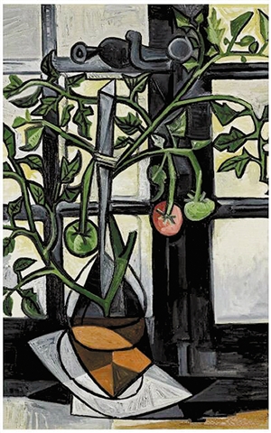 1944年夏天,畢加索與情人瑪麗·特雷斯生活在還處于納粹占領(lǐng)中的法國(guó)巴黎,有一天,他為家中窗臺(tái)上的番茄植物畫(huà)了一幅靜物,既反映了當(dāng)時(shí)食物緊缺、人們不得不自己種植農(nóng)產(chǎn)品的現(xiàn)實(shí),同時(shí)還以富有生機(jī)的色彩和成熟果實(shí)的意向表達(dá)了人們強(qiáng)烈的意志力。那個(gè)時(shí)候,番茄是這座城市窗臺(tái)和陽(yáng)臺(tái)上最常見(jiàn)的東西。