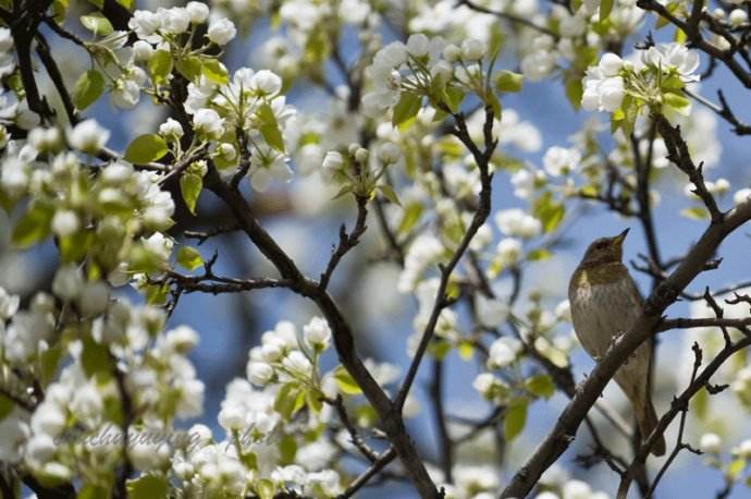在煙霧樣的春雨里,忽然有一天抬頭望窗外,驀地看見池西畔的一枝樹開放著一些淡紅的叢花了。我要說是“叢花”;因?yàn)槭沁@樣的密集,而且又沒有半張葉子。無疑地這就是櫻花。