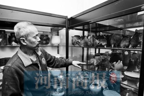 “這個是商代的鬲,這個是漢代的陶,這個是五代時期的玉枕……”河南鄭州某小區(qū),在59歲敬勤儉的家中,說起展示柜中的藏品,他一臉的寵溺。“漂亮著呢”“好看得很”是他說到這些寶貝時用得最多的話,這些都是敬勤儉在近20年里撿來的。