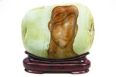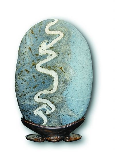 金沙江卵石的種類繁多,主要有芙蓉石、墨畫(huà)石、油畫(huà)石、龜紋石、螺鈿石、松花石、丹彩石、牧羊石、金剛石、燙畫(huà)石、彩蠟石、金沙彩等。這些石頭到底有多好,水富縣的石友們總結(jié)出十大美——天然美、色彩美、線條美、石質(zhì)美、形象美、裝飾美、朦朧美、含蓄美、空靈美、意境美。如果沒(méi)有江水長(zhǎng)年累月的沖刷和搬運(yùn),也就不會(huì)形成這么多美麗的石頭。水富縣奇石辦多次組織當(dāng)?shù)氐氖虆⒓尤珖?guó)石展,幾年來(lái),捧回特等獎(jiǎng)一枚,金獎(jiǎng)185枚,銀獎(jiǎng)420枚,優(yōu)秀獎(jiǎng)600枚。好像是在夸自己,曹會(huì)長(zhǎng)說(shuō)得有些臉紅,用手拍打起石頭來(lái)。在一旁的老伴兒說(shuō),老曹一高興就愛(ài)拍石頭,說(shuō)石頭能聽(tīng)懂他的話。這倒讓我想起著名美學(xué)家王朝聞贊美奇石的一首詩(shī):“石居人外,人在石中。相擊相和,創(chuàng)造對(duì)方?!?/p>