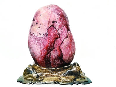 金沙江卵石的種類繁多,主要有芙蓉石、墨畫石、油畫石、龜紋石、螺鈿石、松花石、丹彩石、牧羊石、金剛石、燙畫石、彩蠟石、金沙彩等。這些石頭到底有多好,水富縣的石友們總結出十大美——天然美、色彩美、線條美、石質(zhì)美、形象美、裝飾美、朦朧美、含蓄美、空靈美、意境美。如果沒有江水長年累月的沖刷和搬運,也就不會形成這么多美麗的石頭。水富縣奇石辦多次組織當?shù)氐氖虆⒓尤珖?,幾年來,捧回特等獎一枚,金?85枚,銀獎420枚,優(yōu)秀獎600枚。好像是在夸自己,曹會長說得有些臉紅,用手拍打起石頭來。在一旁的老伴兒說,老曹一高興就愛拍石頭,說石頭能聽懂他的話。這倒讓我想起著名美學家王朝聞贊美奇石的一首詩:“石居人外,人在石中。相擊相和,創(chuàng)造對方?!?/p>