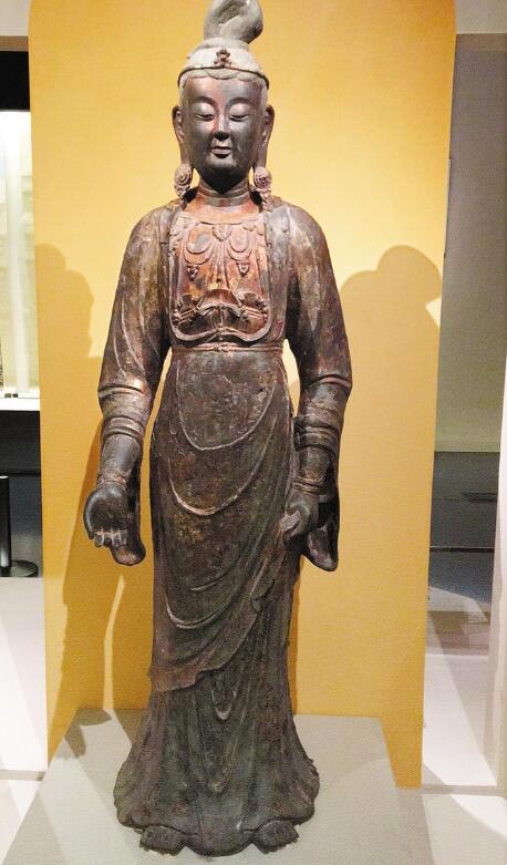 記者看到,如今正在舉行的“觀照自在——中國古代觀音造像藝術(shù)展”展出中國漢藏兩大佛教體系中觀音及其化身、本尊、眷屬等相關(guān)造像共計(jì)百余件,包括銅造像、繪畫、瓷塑以及木雕等多種質(zhì)地,均為首都博物館所藏,藝術(shù)文化價(jià)值極高。由此亦可見首都博物館所藏佛教文物非常豐富。