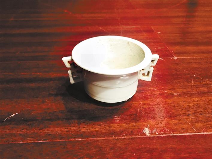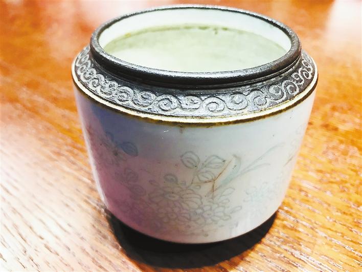 ▲藏友帶來的“清德化甜白釉香爐”(上)和“清末民初鐵箍泥刻花卉紋筆洗”。 (吳冠甫 攝)