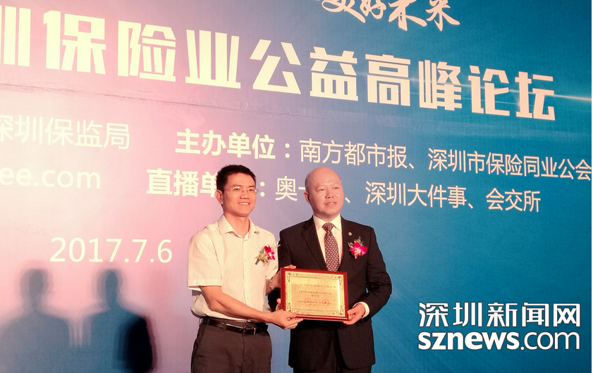 深圳新聞網(wǎng)訊 回歸風險保障,穩(wěn)固美好未來。7月6日,由深圳市金融辦、深圳保監(jiān)局指導,深圳市保險同業(yè)公會聯(lián)合南方都市報社共同舉辦的2017年深圳保險業(yè)公益高峰論壇在福田召開,平安人壽深圳分公司榮獲“2017深圳保險精準扶貧功勛單位”稱號,總經(jīng)理賴劍文獲“2017深圳保險業(yè)愛心人物”獎。