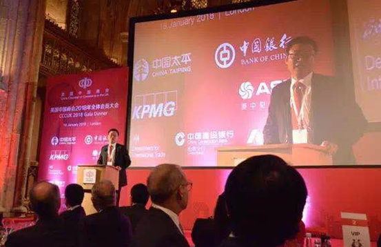 (1月18日,英國(guó)中國(guó)商會(huì)首屆“中英經(jīng)濟(jì)貿(mào)易論壇”在倫敦金融城市政廳隆重舉辦,太平英國(guó)總經(jīng)理耿金海致閉幕詞。)