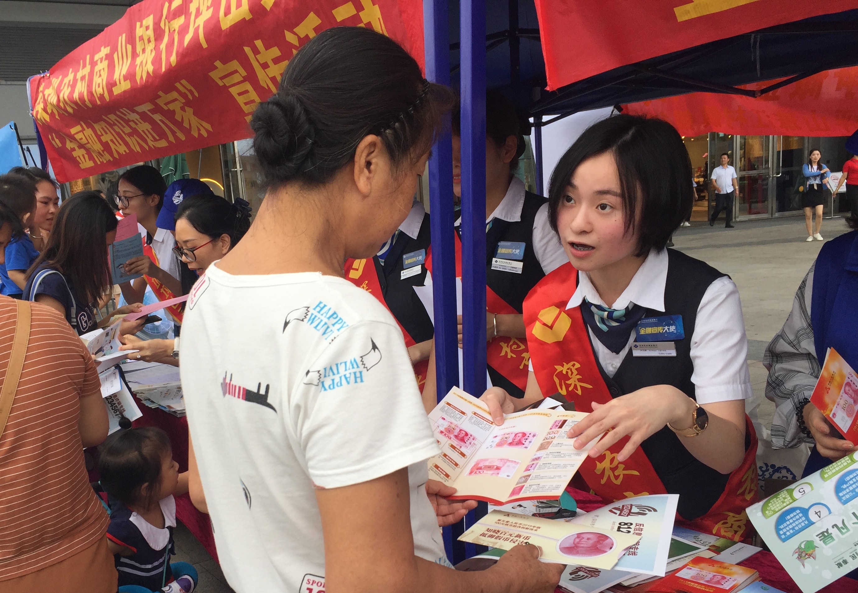 為進一步推動金融知識的廣泛傳播,9月28日,深圳農村商業(yè)銀行攜同光大銀行、郵政儲蓄銀行、坪山珠江村鎮(zhèn)銀行在坪山區(qū)大型商場“益田假日世界廣場”舉行“金融知識宣傳活動”?;顒蝇F(xiàn)場來咨詢的市民絡繹不絕,很多聽完講解的市民都對這種貼心的宣傳服務譽不絕口。