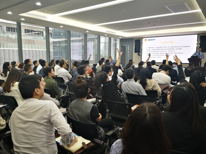 反詐騙知識有獎問答的現(xiàn)場互動環(huán)節(jié)掀起了講座小高潮,皇庭中心商戶代表積極踴躍回答問題,現(xiàn)場氣氛十分熱烈。