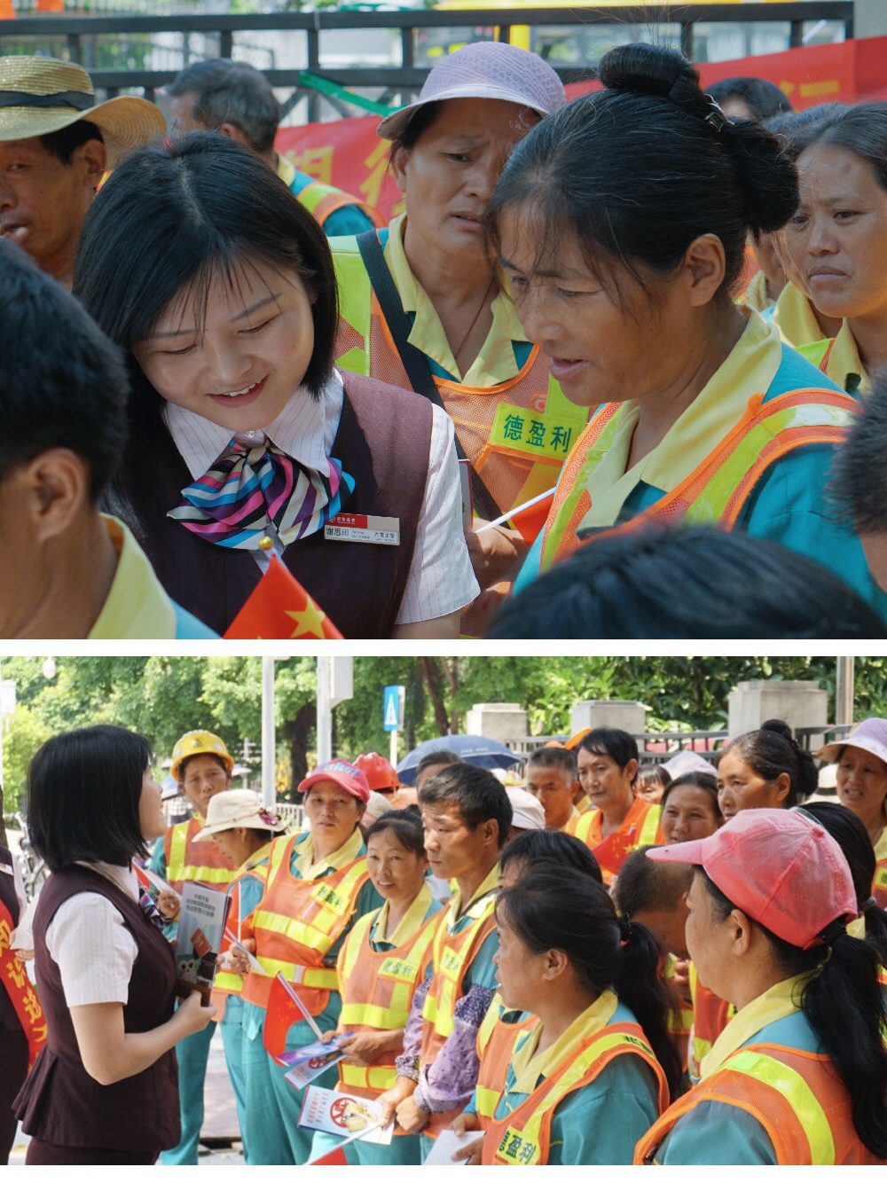 時代廣場支行走近環(huán)衛(wèi)工人,以金融知識宣教活動實(shí)現(xiàn)“招行紅”與“環(huán)衛(wèi)橙”的美麗相遇。