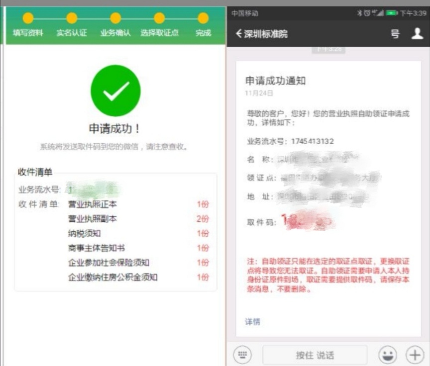 前往網(wǎng)點輸入取件碼刷臉打印營業(yè)執(zhí)照