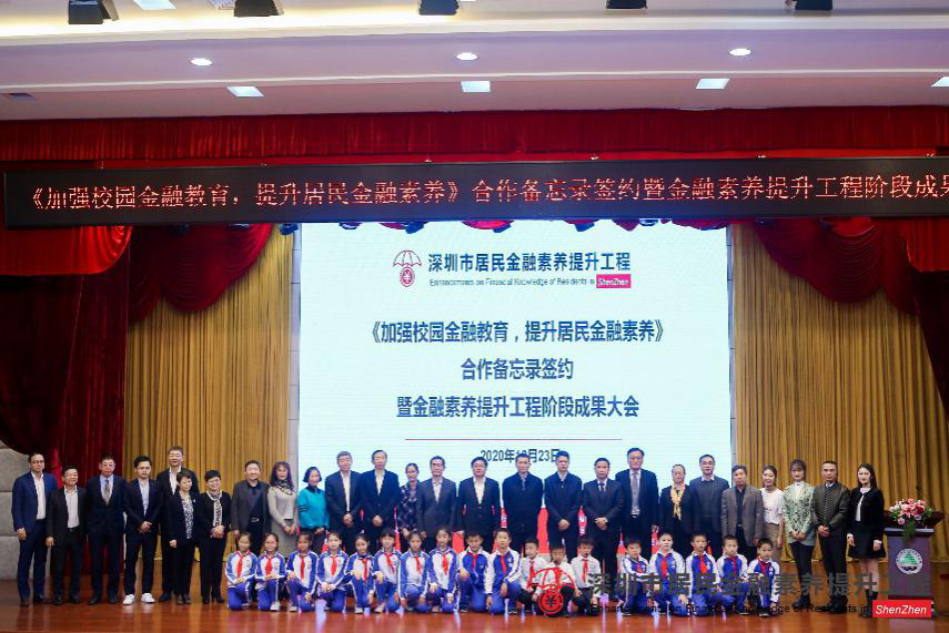 深圳新聞網(wǎng)·見圳客戶端2020年12月28日訊 近日,由中國人民銀行深圳市中心支行、深圳銀保監(jiān)局、深圳證監(jiān)局、深圳市地方金融監(jiān)督管理局、深圳證券交易所、深圳市教育局、福田區(qū)人民政府主辦,深圳市民政局協(xié)辦的《加強校園金融教育,提升居民金融素養(yǎng)》合作備忘錄簽約暨金融素養(yǎng)提升工程階段成果大會在福田實驗僑香學校舉行。深圳市政府、相關(guān)機構(gòu)領(lǐng)導,市各金融機構(gòu)代表、市區(qū)中小學校領(lǐng)導、街道社區(qū)負責人以及僑香學校的師生們等逾200人出席了大會。