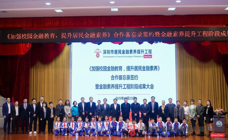 深圳新聞網(wǎng)·見圳客戶端2020年12月29日訊 近日,由中國(guó)人民銀行深圳市中心支行、深圳銀保監(jiān)局、深圳證監(jiān)局、深圳市地方金融監(jiān)督管理局、深圳證券交易所、深圳市教育局、福田區(qū)人民政府主辦,深圳市民政局協(xié)辦的《加強(qiáng)校園金融教育,提升居民金融素養(yǎng)》合作備忘錄簽約暨金融素養(yǎng)提升工程階段成果大會(huì)在福田實(shí)驗(yàn)僑香學(xué)校舉行。深圳市政府、相關(guān)機(jī)構(gòu)領(lǐng)導(dǎo),市各金融機(jī)構(gòu)代表、市區(qū)中小學(xué)校領(lǐng)導(dǎo)、街道社區(qū)負(fù)責(zé)人以及僑香學(xué)校的師生們等逾200人出席了大會(huì)。