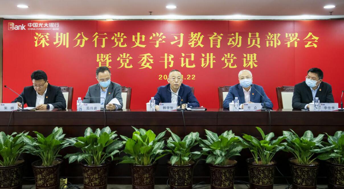 深圳新聞網(wǎng)·見圳客戶端2021年3月23日訊 知其史方能激其志,激其志方能盡其責(zé)。昨日,光大銀行深圳分行舉行黨史學(xué)習(xí)動(dòng)員部署會(huì)暨黨委書記講黨課,學(xué)習(xí)貫徹習(xí)近平總書記在黨史學(xué)習(xí)教育動(dòng)員大會(huì)上的重要講話精神和李曉鵬董事長集團(tuán)黨史學(xué)習(xí)教育動(dòng)員部署會(huì)講話精神。分行黨委書記、行長韓學(xué)智全面動(dòng)員部署黨史學(xué)習(xí)教育工作,并講《學(xué)習(xí)中共黨史 牢記使命擔(dān)當(dāng)—中國共產(chǎn)黨從“一大”到“三大”的歷史沿革》專題黨課。分行黨委委員、紀(jì)委書記方眾主持會(huì)議并對《深圳分行黨委黨史學(xué)習(xí)教育工作方案》進(jìn)行了宣講和具體工作部署,分行領(lǐng)導(dǎo)班子成員和全體中層干部共160多人參加會(huì)議。