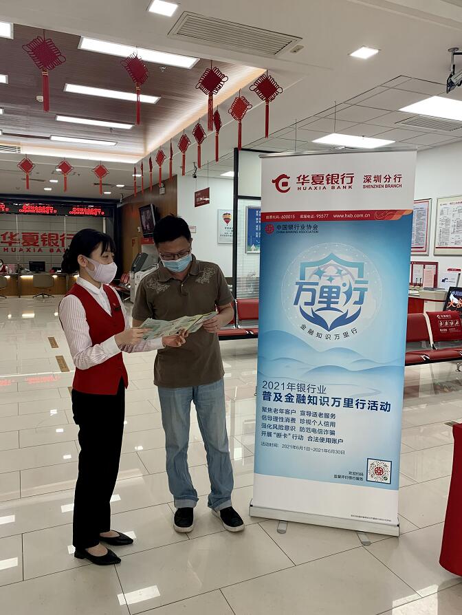 深圳新聞網(wǎng)2021年6月21日訊(記者 朱琳)為增強(qiáng)社會(huì)公眾參與金融活動(dòng)風(fēng)險(xiǎn)識(shí)別能力,引導(dǎo)消費(fèi)者正確運(yùn)用金融知識(shí),增強(qiáng)風(fēng)險(xiǎn)意識(shí)和責(zé)任意識(shí),共創(chuàng)和諧金融環(huán)境,近日,華夏銀行深圳分行組織全轄網(wǎng)點(diǎn)開(kāi)展2021年“普及金融知識(shí)萬(wàn)里行”、“普及金融知識(shí)守住錢(qián)袋子”、“防范非法集資宣傳月”等金融知識(shí)宣傳普及活動(dòng)。