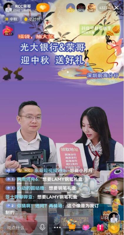 此次直播活動中,前海分行主播、副播和助手各司其職、互相配合。直播現(xiàn)場邀請了抖音大咖與前海分行數(shù)十名理財崗員工,通過兩兩問答互動、以故事帶入的方式對該行信用卡、借記卡權(quán)益以及金融消保知識進行普及和宣傳,為觀眾提供了全新的金融服務體驗,提高了觀眾的參與度和愉悅感。