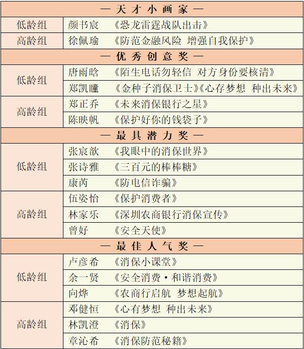 “我是小小繪畫家”獲獎名單
