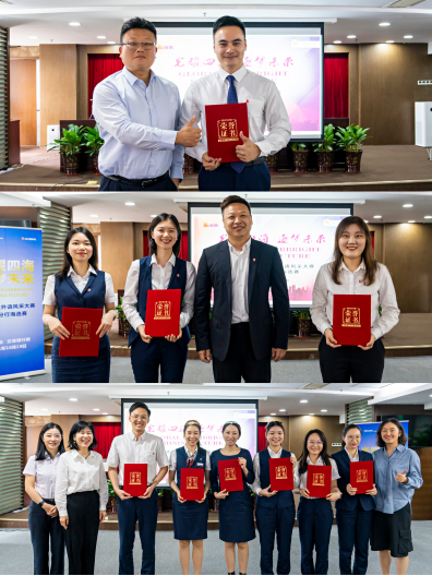分行黨委委員、副行長(zhǎng)宋綱、黨委委員劉晨鵬及參會(huì)的對(duì)公條線各部門負(fù)責(zé)人分別向優(yōu)秀獲獎(jiǎng)?wù)哳C獎(jiǎng)。