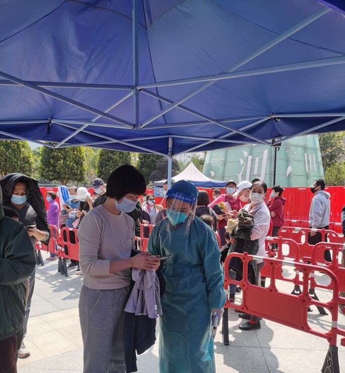 2022年2月24日,陳暢身處的福保街道益田村被劃定為“管控區(qū)”,益田社區(qū)近四萬居民將每天開展全員核酸檢測。2月25日,益田社區(qū)黨群服務中心發(fā)出招募疫情防控志愿者的通知,陳暢同志第一時間亮明自己的黨員身份,加入臨時黨員先鋒隊。上午9點至下午3點,在益田村中心廣場核酸檢測點參加志愿者服務,6個小時時間為近2000居民提供核酸檢測掃碼服務。陳暢同志在居家隔離期間,并沒有安于休息,而是積極發(fā)揮黨員先鋒模范作用,以志愿者的身份服務在疫情防控一線。