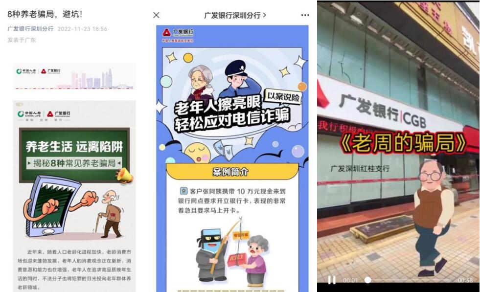 廣發(fā)銀行深圳分行積極運(yùn)用數(shù)字科技與新媒體宣傳相結(jié)合,通過發(fā)動全行開展寓教于樂的短視頻大賽方式來宣傳金融知識,提高老年人防范養(yǎng)老詐騙意識;通過分行微信公眾號發(fā)送防范非法集資、防范養(yǎng)老詐騙等宣傳軟文;加強(qiáng)對打著科技創(chuàng)新、綠色轉(zhuǎn)型等政策旗號,利用元宇宙、NFT等新概念的新業(yè)態(tài)新形態(tài)等非法集資活動進(jìn)行風(fēng)險提示。