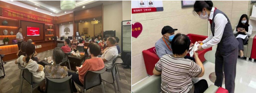 各網(wǎng)點(diǎn)邀請附近的老年客戶到行參與講座,以目前典型的養(yǎng)老騙局作為切入點(diǎn),通過播放分行自制養(yǎng)老防詐小短片,以生動的語言向老年人揭示一些宣稱以房養(yǎng)老為名,誘騙老年人抵押房產(chǎn)購買“高收益”理財產(chǎn)品等進(jìn)行非法集資詐騙的陷阱,向老年人普及新型詐騙趨勢,拓寬信息交流渠道,充分發(fā)揮銀行金融知識宣傳的網(wǎng)點(diǎn)效應(yīng)。