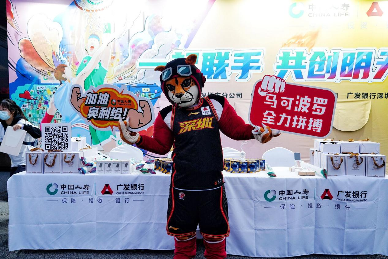 賽場(chǎng)外,廣發(fā)銀行深圳分行、中國(guó)人壽深圳分公司、中國(guó)人壽財(cái)險(xiǎn)深圳分公司聯(lián)合組成的三支小分隊(duì)一字排開(kāi),共同為觀眾們提供養(yǎng)老金賬戶、壽險(xiǎn)、車險(xiǎn)等一系列金融服務(wù)咨詢,進(jìn)一步突出了保銀協(xié)同優(yōu)勢(shì)。展位上整整齊齊地?cái)[滿了咖啡杯,宇航員小臺(tái)燈,廣發(fā)專屬運(yùn)動(dòng)手環(huán)等小禮物,觀眾們積極參與現(xiàn)場(chǎng)活動(dòng)抽獎(jiǎng),熱鬧的氛圍吸引了深圳馬可波羅隊(duì)的吉祥物“豹子”前來(lái)互動(dòng)拍照,前來(lái)咨詢的觀眾也留下了觀賽的美好剪影。