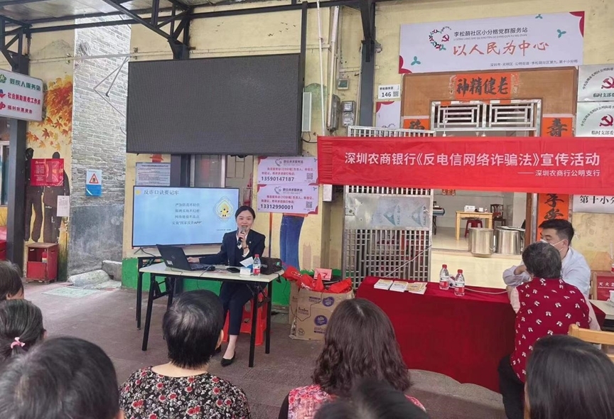 深圳農(nóng)商銀行公明支行筑牢老年金融安全防線。為增強(qiáng)老年群體風(fēng)險(xiǎn)防范意識(shí),幫助廣大老年人守好“錢袋子”。2024年3月,公明支行在李松蓢?yán)先嘶顒?dòng)中心舉辦主題為“警惕養(yǎng)老騙局,守護(hù)錢袋子”的反詐宣傳活動(dòng)。工作人員通過PPT演示、案例演練、發(fā)放宣傳折頁、游戲互動(dòng)等方式,揭示非法集資與電信詐騙的種種伎倆,讓阿公阿婆認(rèn)清騙局真相,在輕松愉快的氛圍中掌握防詐知識(shí)。