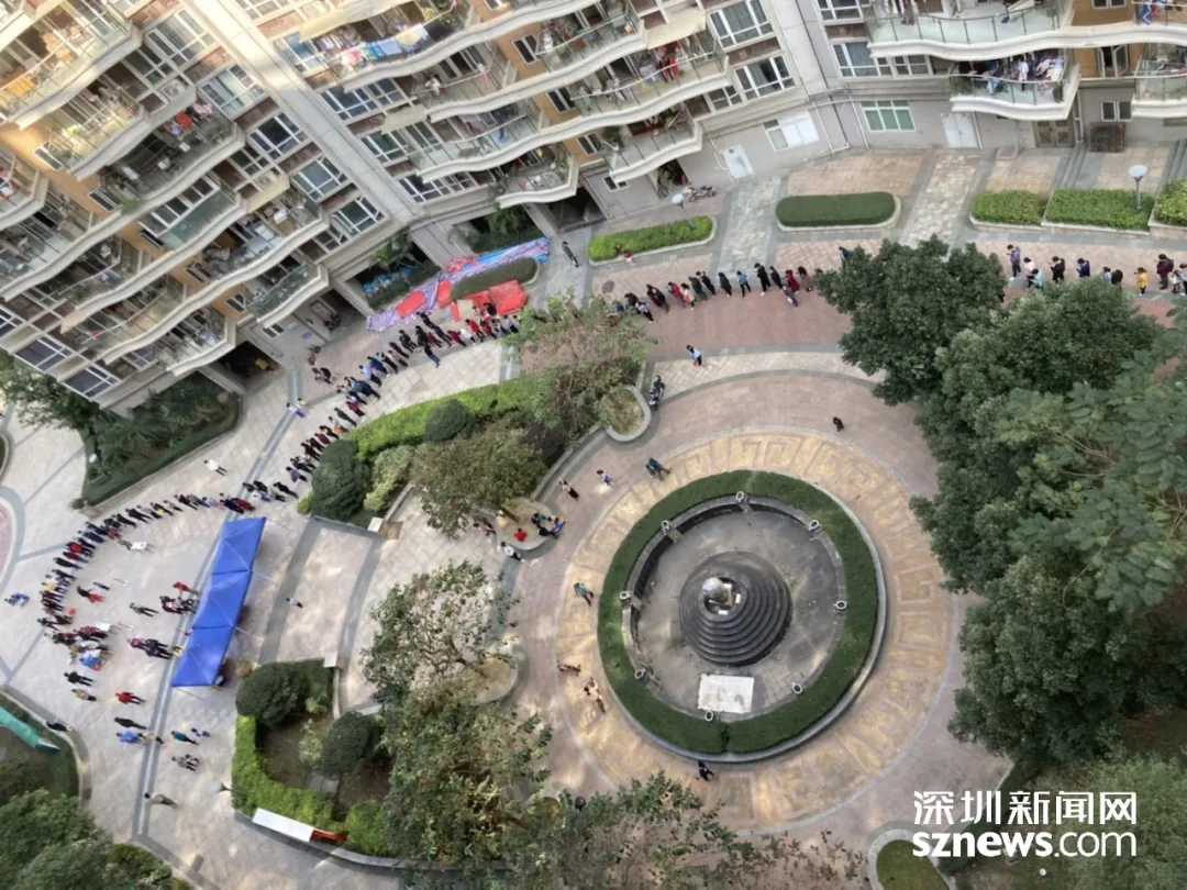 布吉理想家園小區(qū),市民有序排隊做核酸檢測