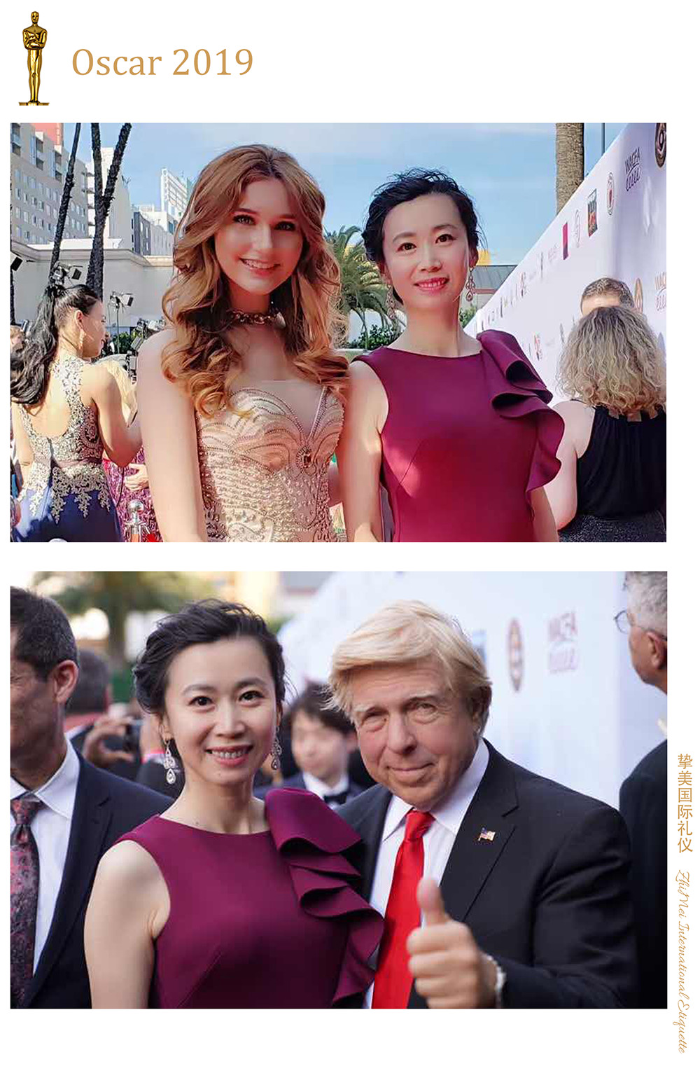 作為首位在美國新英格蘭禮儀學(xué)院被授予青少年禮儀師資認證的中國人,同時又是世界范圍內(nèi)第三位被美國華盛頓國際外交禮儀學(xué)院授予國際商務(wù)禮儀培訓(xùn)資質(zhì)禮儀導(dǎo)師的華人,李欣陽可謂頭頂燦爛光環(huán),這讓摯美國際上路之時已經(jīng)站在一個非常高的基點之上,意味著格局與視野已經(jīng)領(lǐng)先了行業(yè)一大截,因此能夠受邀參加奧斯卡頒獎禮也就不足為奇了。