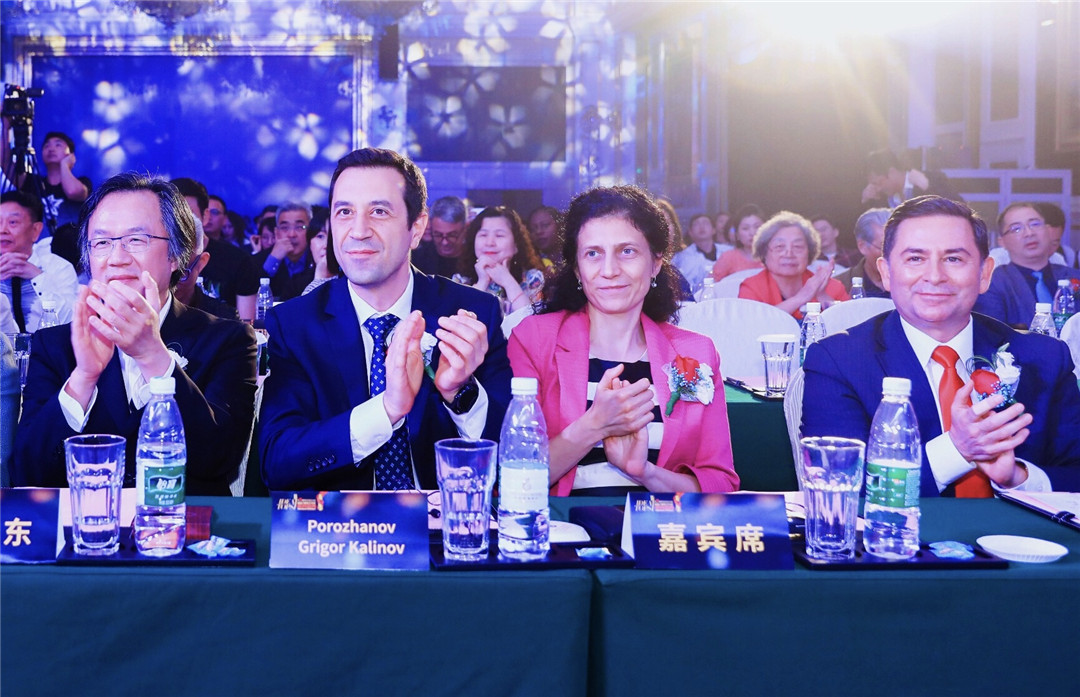 △保加利亞駐中國大使Porozhanov Grigor Kalinov與中俄友好大使、俄羅斯著名影星喜蓮娜為保加利亞DA Architects公司設(shè)計師頒發(fā)“最佳商業(yè)空間設(shè)計獎”