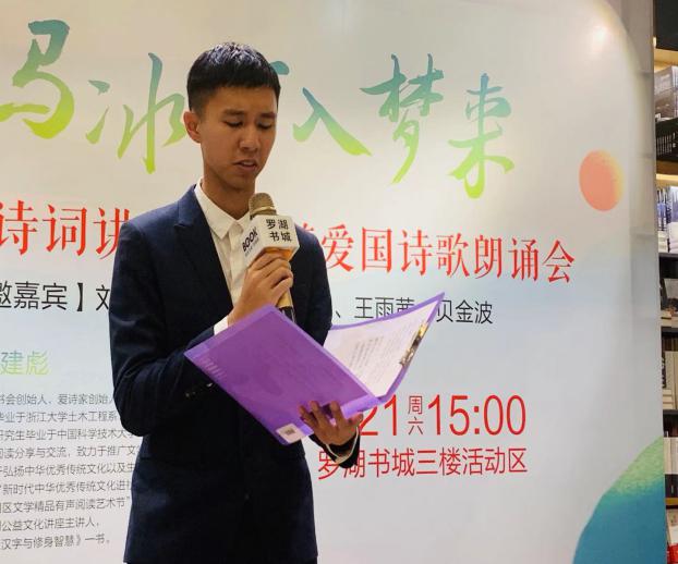 緊接著,陸游愛國詩詞朗誦會正式開始。劉亦欣小朋友聲情并茂地朗誦了《我心中的祖國》,作為特別表演節(jié)目喜迎國慶節(jié)。隨后,優(yōu)秀的詩詞愛好者們齊聚一堂,伴隨著或慷慨悲涼,或激昂向上的背景音樂,為在場觀眾帶來了一場豐富的視聽盛宴,如陸上老師的一首《三月十七夜醉中作》,音調鏗鏘,情緒飽滿,贏得掌聲陣陣。