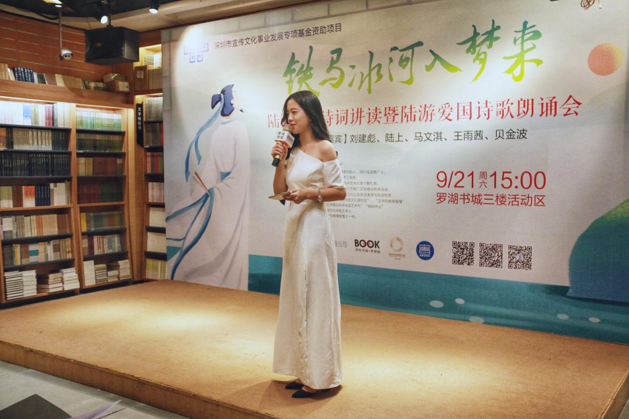 深圳新聞網(wǎng)訊 9月21日下午,由深圳市宣傳文化事業(yè)發(fā)展專項基金資助的“新時代中華優(yōu)秀傳統(tǒng)文化進社區(qū)”項目之“鐵馬冰河入夢來”陸游愛國詩詞公益講座暨陸游愛國詩詞朗誦會在羅湖書城三樓活動區(qū)成功舉辦。本次活動由深圳市壹書文化傳播有限責任公司、深圳書城羅湖城共同主辦,壹書閱讀推廣人、愛詩家創(chuàng)始人劉建彪先生擔任主講嘉賓?;顒由形撮_始,現(xiàn)場已座無虛席,觀眾們對講座充滿了期待,更有小朋友們朗誦起了陸游的名句。
