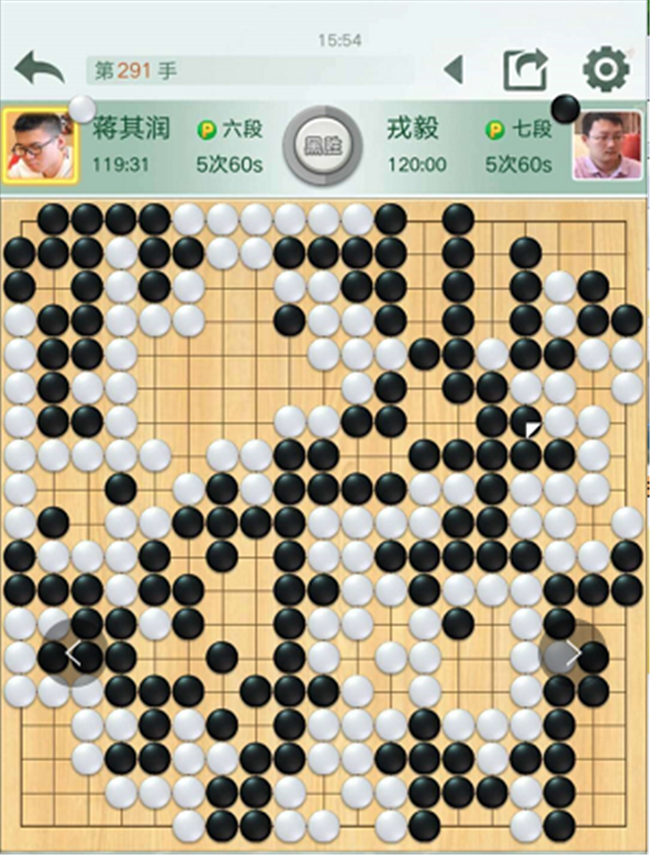 【賽場(chǎng)花絮】本輪比賽中,下出了“四劫循環(huán)”無(wú)勝負(fù)的棋局。此局出現(xiàn)在上海建橋?qū)W院隊(duì)對(duì)陣日照山海大象隊(duì)的主將之戰(zhàn)中,上海主將李維清與日照主將江維杰下出“四劫循環(huán)”,按規(guī)定,本局判為無(wú)勝負(fù)。對(duì)局停止時(shí),雙方都各剩最后一次讀秒。兩人立即進(jìn)行加賽。中國(guó)圍棋隊(duì)領(lǐng)隊(duì)華學(xué)明發(fā)朋友圈稱贊棋手具有職業(yè)風(fēng)范。
