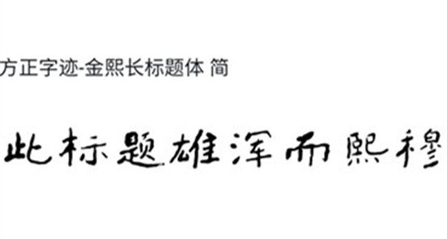 金熙長(zhǎng)先生創(chuàng)作的《方正字跡-金熙長(zhǎng)標(biāo)題體》,以嚴(yán)謹(jǐn)?shù)膶W(xué)術(shù)態(tài)度,經(jīng)過近四十年來一直不斷的歷代名碑名帖的錘煉化虛,終將難字拆開成“又佳”,形成自已目前“雄渾靜穆與高古野逸為一爐的居士書風(fēng)面貌”。面對(duì)《方正字跡-金熙長(zhǎng)標(biāo)題體》,讀者只要將目光稍作停留,就不難發(fā)現(xiàn)該字體有以下特色——