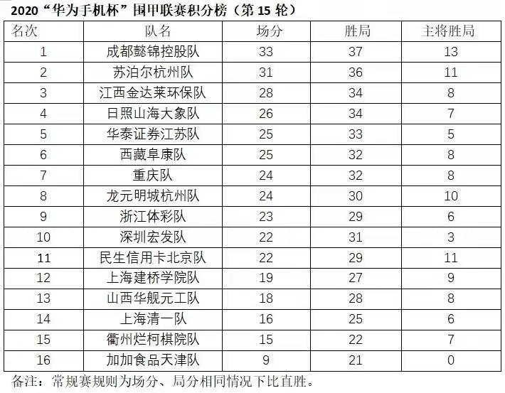 本輪深圳宏發(fā)隊1:3負成都懿錦控股隊,積22分,排名第十。本輪其它隊賽果如下:蘇泊爾杭州 3:1勝 民生信用卡北京,上海建橋?qū)W院 3:1勝 龍元明城杭州,日照山海大象 3:1 浙江體彩,西藏阜康 2:2主將勝 重慶,華泰證券江蘇 2:2主將勝 山西華