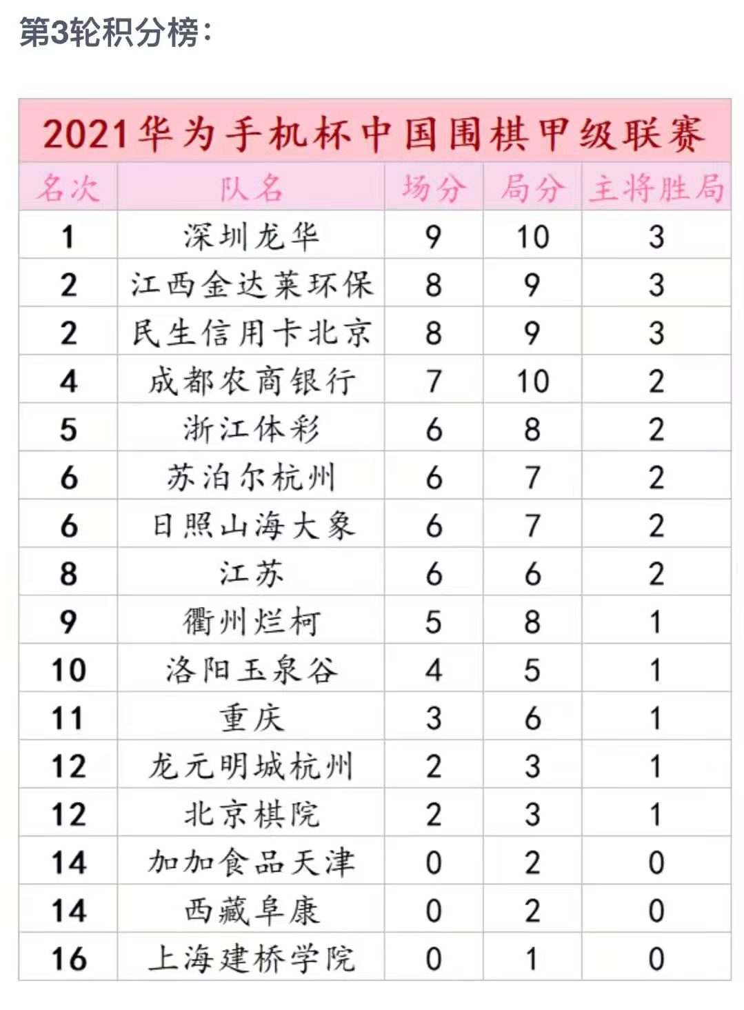 圍甲賽程預告:2021華為手機杯中國圍棋甲級聯(lián)賽5月11日第四輪深圳龍華vs衢州爛柯