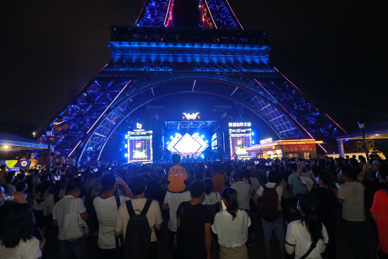 17:00—22:00鐵塔下,今年國慶最重磅節(jié)目超豪華陣容“WOW潮音嘉年華”閃亮登場,本屆潮音嘉年華群星璀璨,新生代實力歌手趙磊、狂歡一路歌舞相隨,國內(nèi)dancerock先行軍“脆莓樂隊”一經(jīng)出場全場狂歡吶喊,粉絲們瘋狂打 call!直擊心靈的音樂,震撼的舞臺效果游客們紛紛表示“值回票價”。接下來的幾天重磅明星接連不斷: solo新星趙讓、霓虹花園、Hiphop少年組合BOY STORY、脆莓樂隊、LeeyOn李昂、對角巷樂隊、布偶樂隊、圳動、黑玫瑰俱樂部、Spaceman太空人等演藝界先鋒人物將陸續(xù)登上舞臺傾情獻演,用充滿活力的青春姿態(tài)向未來致敬,現(xiàn)場游客沉浸其中,隨著歌手與音樂不斷嗨!環(huán)球舞臺同時上演大型音樂舞蹈史詩《盛世紀(jì)》;冰場廣場開啟魔幻光影秀《奇幻歐洲》。