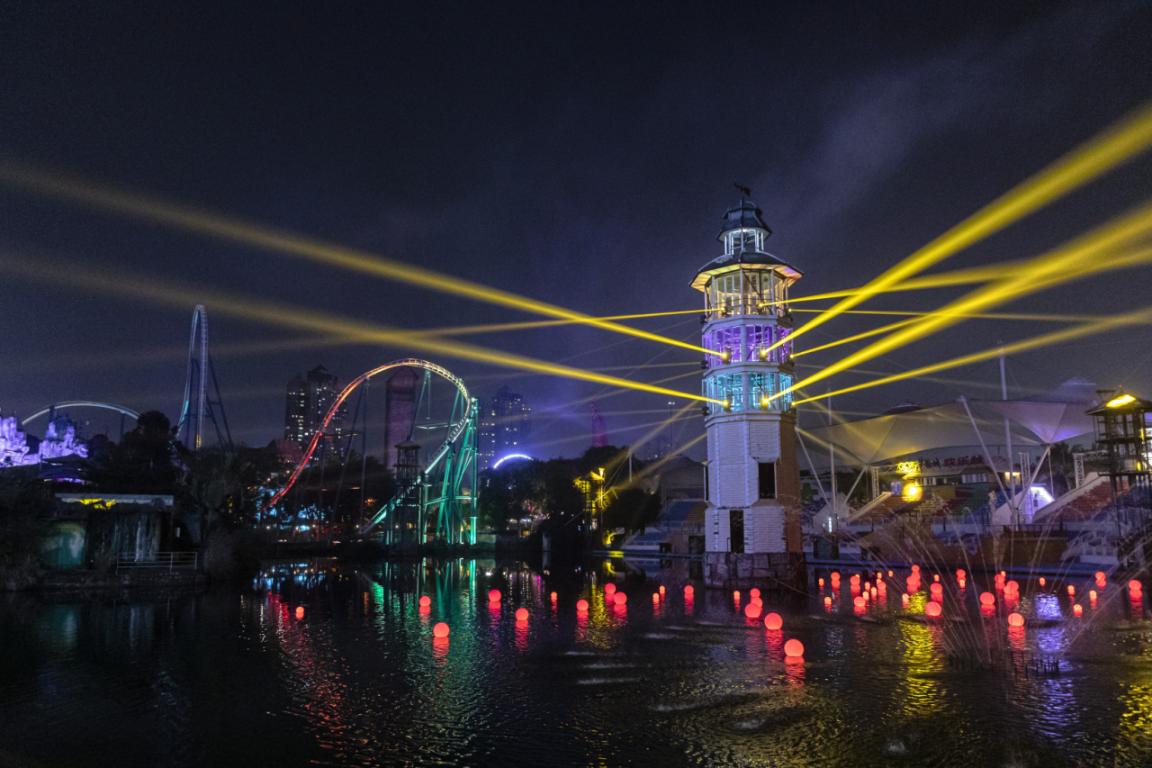 目前,深圳歡樂谷現(xiàn)已形成集“夜間項目、夜間演藝、主題節(jié)慶、夜間景觀、夜間商品、夜間餐飲、夜間服務”為一體的夜游體系。3月,深圳歡樂谷夜間35萬㎡夢幻光樂園炫彩升級,全園燈光持續(xù)亮化。區(qū)別于日間的驚險刺激,歡樂谷的夜晚神秘、浪漫、炫彩、魔幻。夜幕降臨,五大光影秀浪漫上演,“雪域龍吟”、“碧塔星光”、“四季流彩”三大光影秀在香格里拉區(qū)域和陽光海岸區(qū)域燈夢幻上演。三大光影秀將生動的景觀與豐富的劇情、絢爛的燈光效果、動人的情景演出緊密結合,加上2022年全新推出的“魔法奇境”、“西部魅影”兩大5D光影秀,共同組成了“歡樂谷夜場五大光影秀”。除此之外,還有夜光版“雪域雄鷹”“UFO”“旋轉木馬”等數(shù)十個項目將在夜晚換上新裝,讓夜間的歡樂谷“更有看頭”。