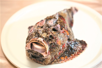 番禺九號私廚有一種奇丑無比的魚,它生活在海底60米之下,興起之時游走于珊瑚之間,懶起來一動不動,潛水之人常常將其誤認(rèn)為是石頭,所以稱它為石頭魚。石頭魚渾身長刺且有毒,廚師只取其肉,棄用魚皮。它自古被視為魚中珍品,因魚肉鮮嫩,據(jù)《本草綱目》記載石頭魚能夠治療筋骨痛,有溫中補(bǔ)虛功效。