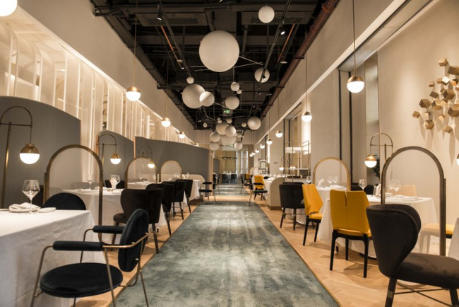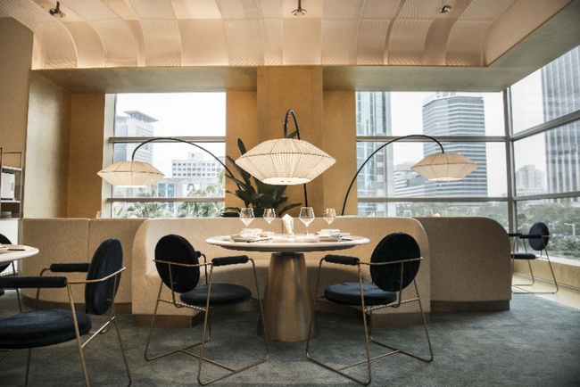 以黑色和金色為主色調(diào)的梧桐PLUS,選用流動的線條對餐廳空間進(jìn)行分割。桌與桌之間的距離保證了食客對話的私密性和安全性。即使沒有預(yù)定到包廂,也不用擔(dān)心旁邊食客的閑聊會影響到彼此。