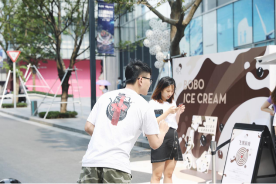 活動當(dāng)天,只要身穿波點(diǎn)元素衣服,就可在波波巴士站領(lǐng)取一杯喜茶派送的新鮮現(xiàn)做的“波波冰淇淋”?;油娣ㄒ哺迂S富,除了現(xiàn)場設(shè)置了很多互動拍照的小道具和背景之外,還新添加了抽獎、飛鏢游戲環(huán)節(jié),并為消費(fèi)者準(zhǔn)備了多樣波波冰淇淋周邊,如喜茶定制波波手機(jī)殼、波波冰淇淋扇子、波波冰淇淋貼紙等等。
