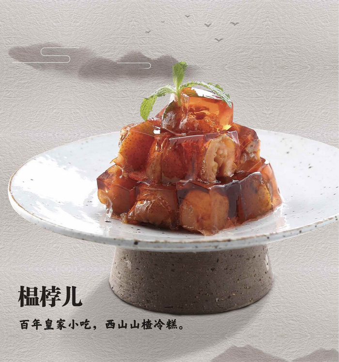 此名相傳為慈禧太后所賜,是她十分喜愛(ài)的小零嘴兒。榅桲與山楂外形相似,實(shí)則不同。它是山楂的一種,外體為紅色,更為小巧。梧桐餐廳在制作時(shí)也保證了北京傳統(tǒng)。選好果子后,先要焯水,并將水拋掉,否則有苦澀味,焯完的果實(shí)要扒皮,扒下來(lái)的皮和果肉可以一起先炒后煮。煮好的榅桲再經(jīng)發(fā)酵、冷卻,成品榅桲湯晶瑩剔透,果實(shí)軟爛甜糯,吃后不倒牙,且能長(zhǎng)期保存,不會(huì)腐敗。