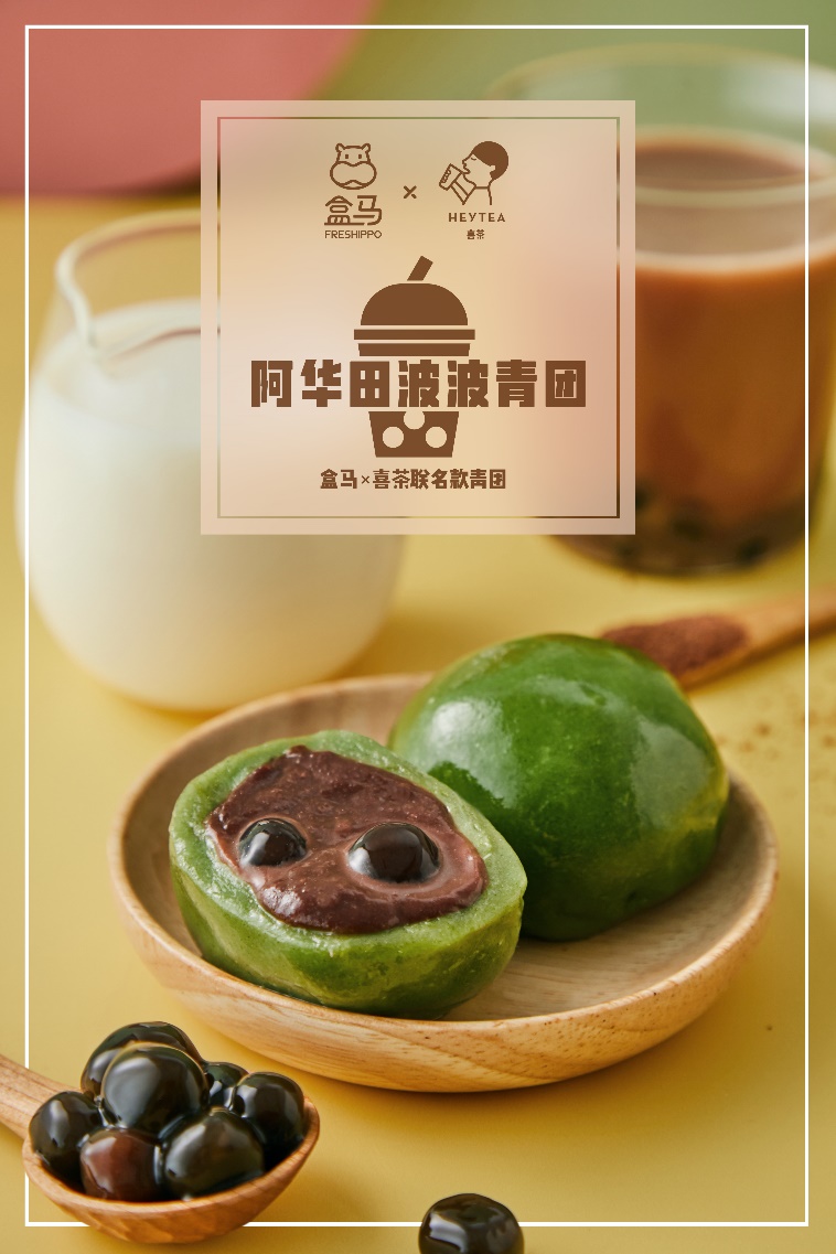 今天,謎底終于揭曉——喜茶手里的是奶茶,而盒馬手中捧著的,是青團(tuán)。