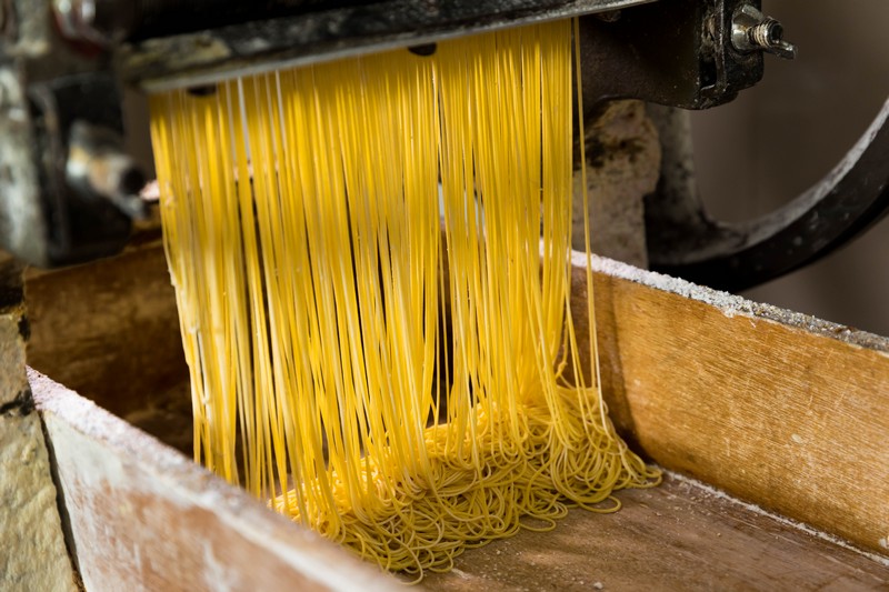 竹升面的精妙在于面味與堿水之間的平衡。堿水決定爽度,面粉決定了硬度和面香。堿水通常分3個度,19.5度、32度和52度,香港竹升面堿水通常用52度的,更為爽口,幾乎一咬即斷;斌哥用的是19.5度的堿水,表現(xiàn)的是恰到好處的爽。面粉必然要用高精面粉,但市面上的面粉那般多,要選合心水的實屬不易,他足足換了20多種,最后才選到合意的。25斤面粉,加上13斤鴨蛋,抽去蛋黃,只用蛋清,這也是增加面條爽度的法子,整個過程不加入一滴水。