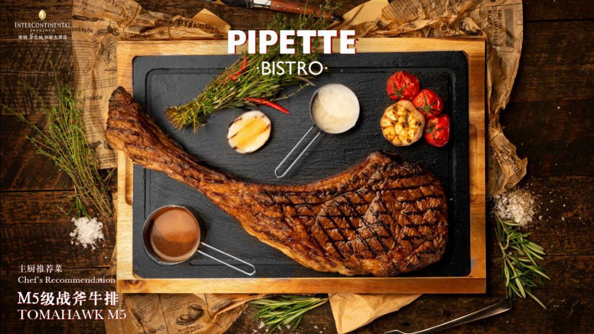 Pipette Bistro法國餐廳極具藝術氣息的前沿設計與美食佳釀相映成趣,挑高的就餐空間,搭配開放式廚房和360度環(huán)繞吧臺,讓就餐體驗更為靈動。餐廳旨在為客人奉上精彩絕倫的干式熟成牛排體驗和純正法式美食,用五感與美食相系。