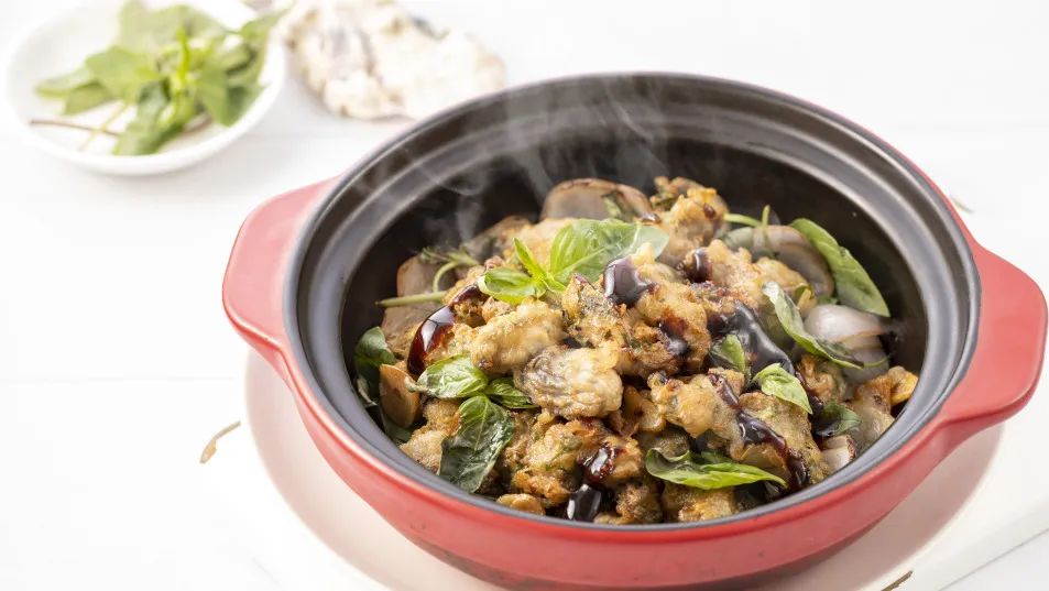 九層塔香燜海蠣:九層塔獨(dú)特的香料風(fēng)味,經(jīng)過(guò)細(xì)火干燜,完全滲入到每粒海蠣肉里,趁熱吃,特別香!