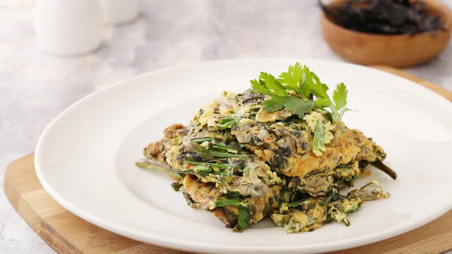 紫菜海蠣煎蛋:頭水紫菜、海蠣被蛋汁層層包裹,紫菜的鮮充分融進(jìn)每顆海蠣中,是全家大小都愛(ài)吃的鮮美。
