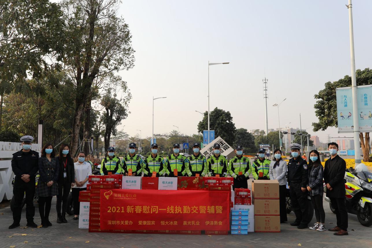 見證客戶端·深圳新聞網(wǎng)2021年1月28日訊 (記者 常軍平)“留深過大年,關(guān)愛滿鵬城”。1月27日,第十八屆關(guān)愛行動舉行了關(guān)愛交警輔警活動,市關(guān)愛辦聯(lián)合伊澤熟食等數(shù)家企業(yè)向光明區(qū)交警送去新年大禮包。