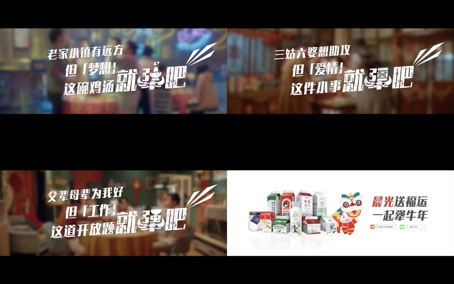 1月29日,晨光乳業(yè)《就犟吧》賀歲TVC微信、朋友圈正式上線(xiàn),就春節(jié)熱門(mén)話(huà)題“結(jié)婚、找穩(wěn)定工作、要不要外出追夢(mèng)”進(jìn)行了生動(dòng)演繹。在熱鬧喜慶的年節(jié)氛圍中,趣味反轉(zhuǎn)的劇情,形象展現(xiàn)了新一代年輕人對(duì)于工作、愛(ài)情、夢(mèng)想“不服輸、敢堅(jiān)持”的態(tài)度。