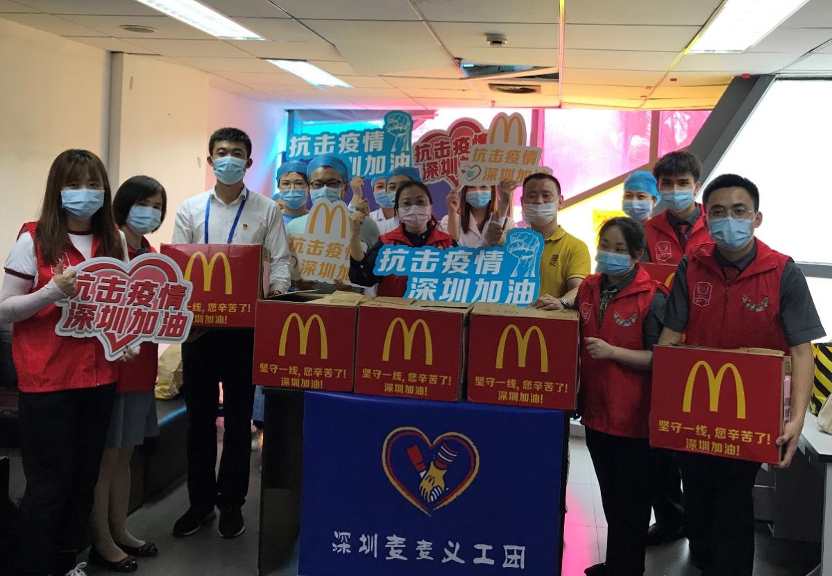 深圳麥當(dāng)勞“麥麥義工團(tuán)”小伙伴們向龍崗疾控中心防疫工作一線的醫(yī)護(hù)人員贈(zèng)送愛心餐食