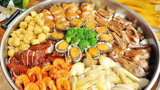 盆菜是中國香港特色菜肴之一,一盆菜里薈萃了百菜百味,中國香港人喜歡逢年過節(jié)時(shí)吃盆菜,賦予盆菜喜慶團(tuán)聚的意義。